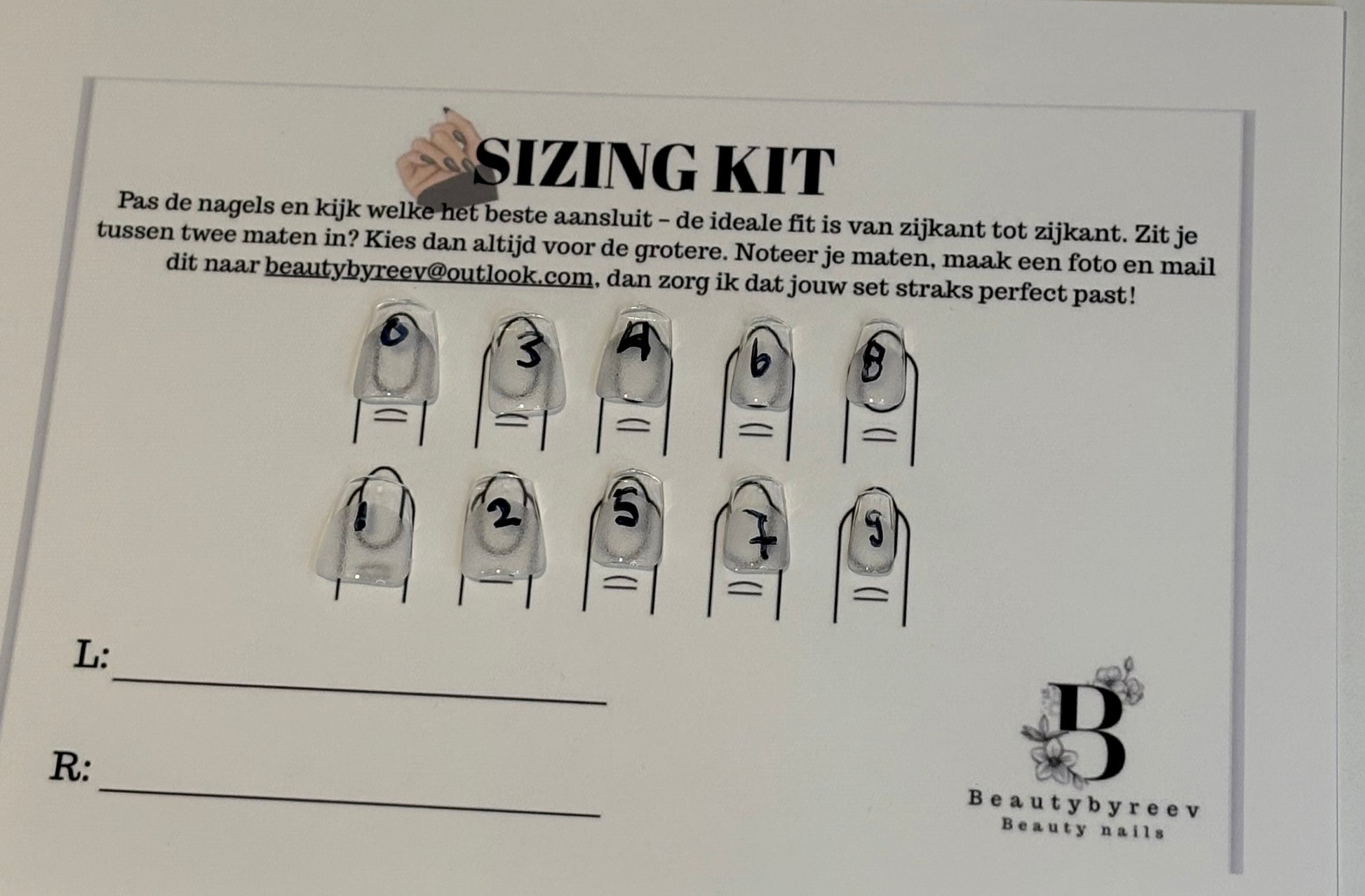 - duidelijke maatnummers op de nagels